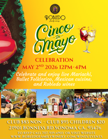 Join us for a vibrant celebration featuring authentic live Mariachi music and mesmerizing Ballet Folklórico performances. Savor delectable Mexican cuisine paired perfectly with selections from Robledo's exceptional wine collection.